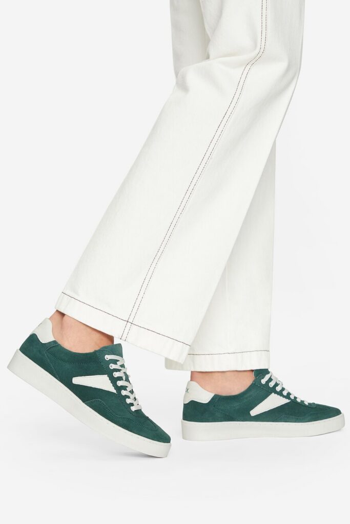 Zielone sneakersy to najłatwiejszy sposób, żeby wprowadzić kolor do codziennych stylizacji. Najlepiej wyglądają w duecie z jeansami (klasyczne blue lub sprane vintage) i prostą górą – białym T-shirtem, longsleevem albo koszulą. Możesz dorzucić szarą bluzę lub beżową marynarkę, żeby całość była bardziej dopracowana. Zielone sneakersy świetnie przełamują neutralne zestawy i sprawiają, że nawet najprostszy outfit wygląda świeżo i nowocześnie.