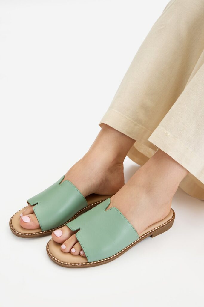 Latem zielone sandały i klapki najlepiej łączyć z jasnymi, lekkimi ubraniami. Świetnie wyglądają z lnianymi spodniami, szortami albo zwiewną sukienką w odcieniu bieli, ecru czy beżu. Jeśli chcesz dodać trochę kontrastu, możesz zestawić je z denimową spódnicą lub krótkimi jeansami. Zieleń w tej formie działa bardzo świeżo i podkreśla letni charakter stylizacji bez zbędnego wysiłku.